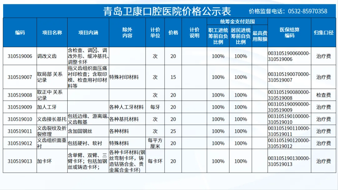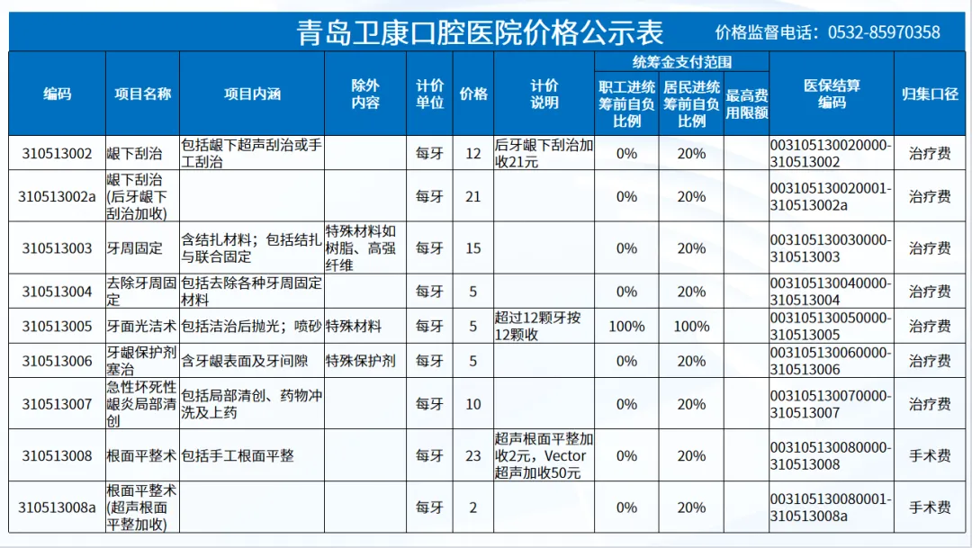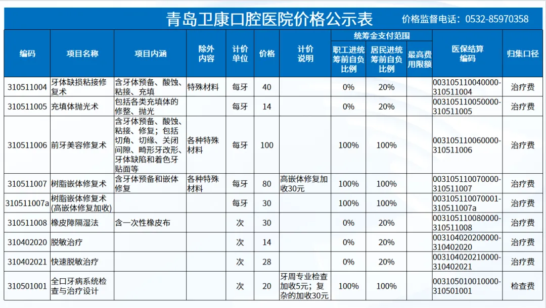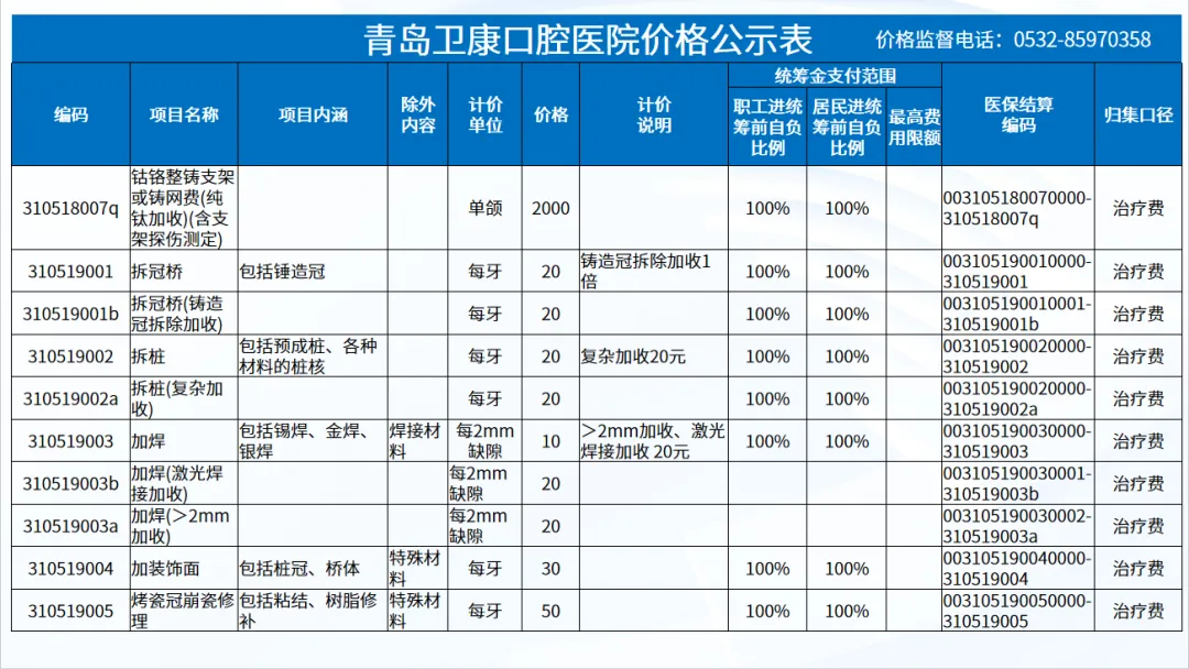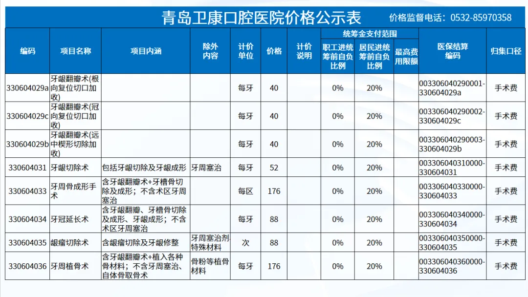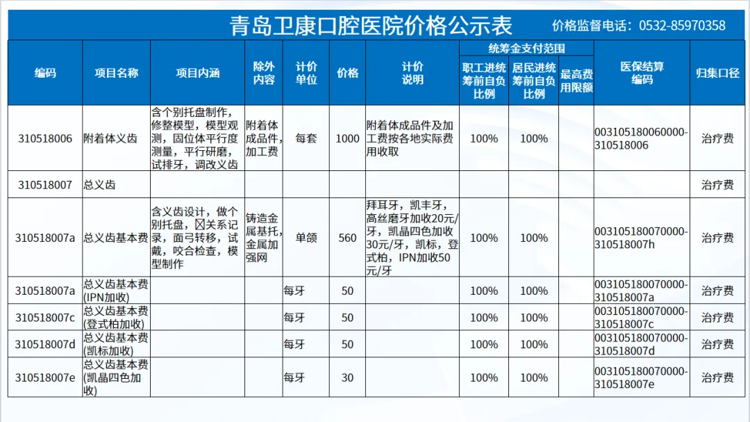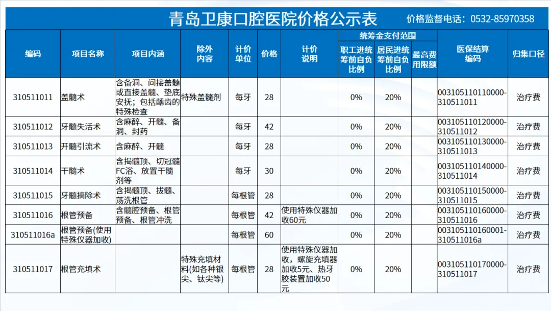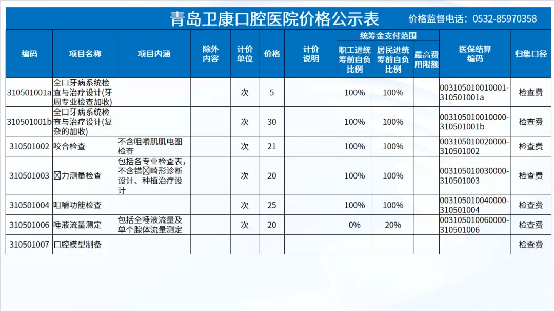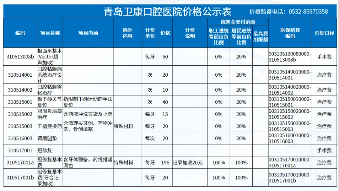 政策依据: 关于优化调整口腔种植等医疗服务项目及价格的通知。 (青医保发[2023]7号);关于规范整合放射检查类等2类医疗服务价格项目的通知(青医保发[2025] 11号的通知。