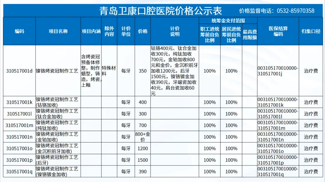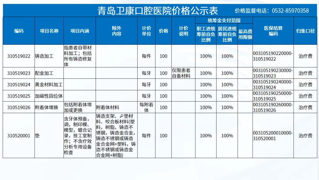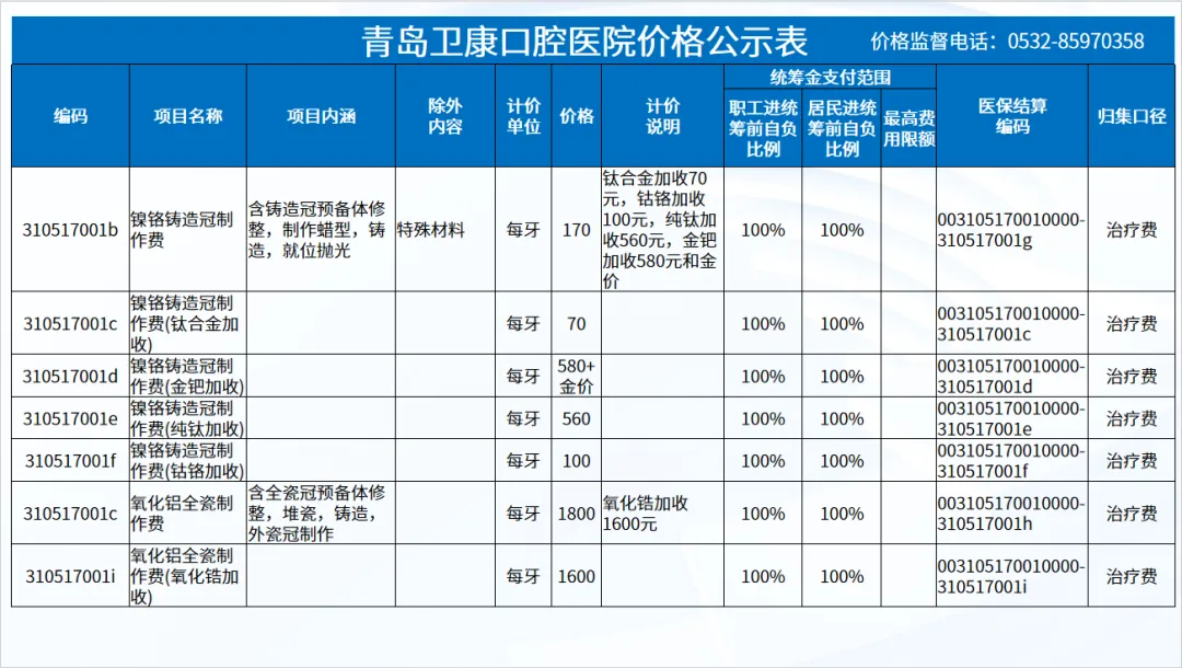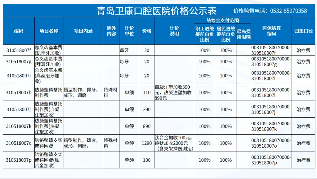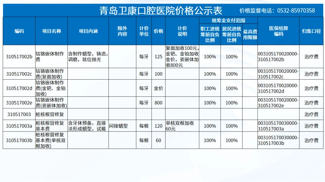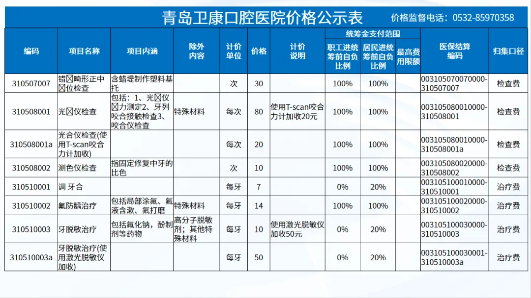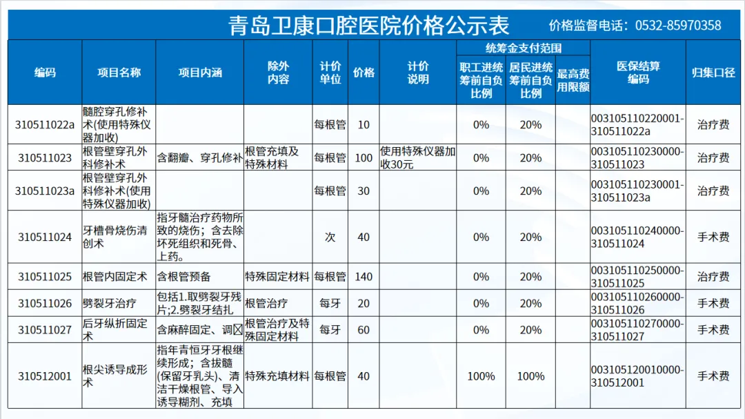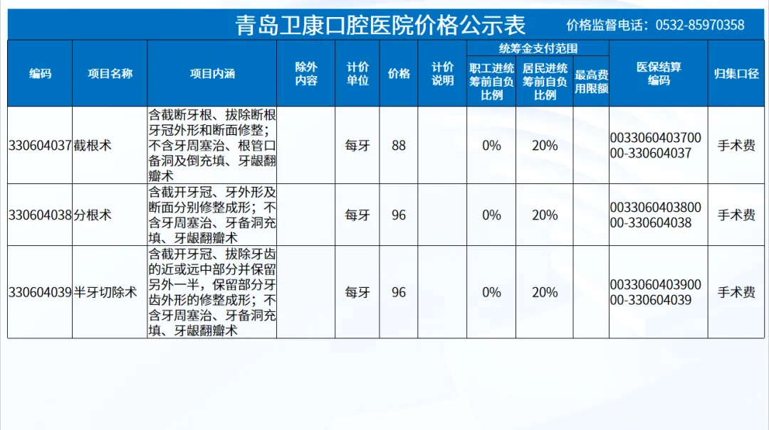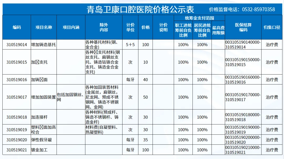 政策依据: 关于优化调整口腔种植等医疗服务项目及价格的通知。 (青医保发[2023]7号);关于规范整合放射检查类等2类医疗服务价格项目的通知(青医保发[2025] 11号的通知。